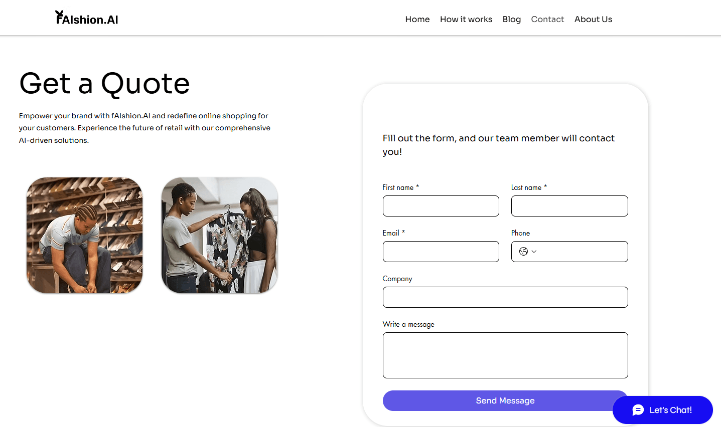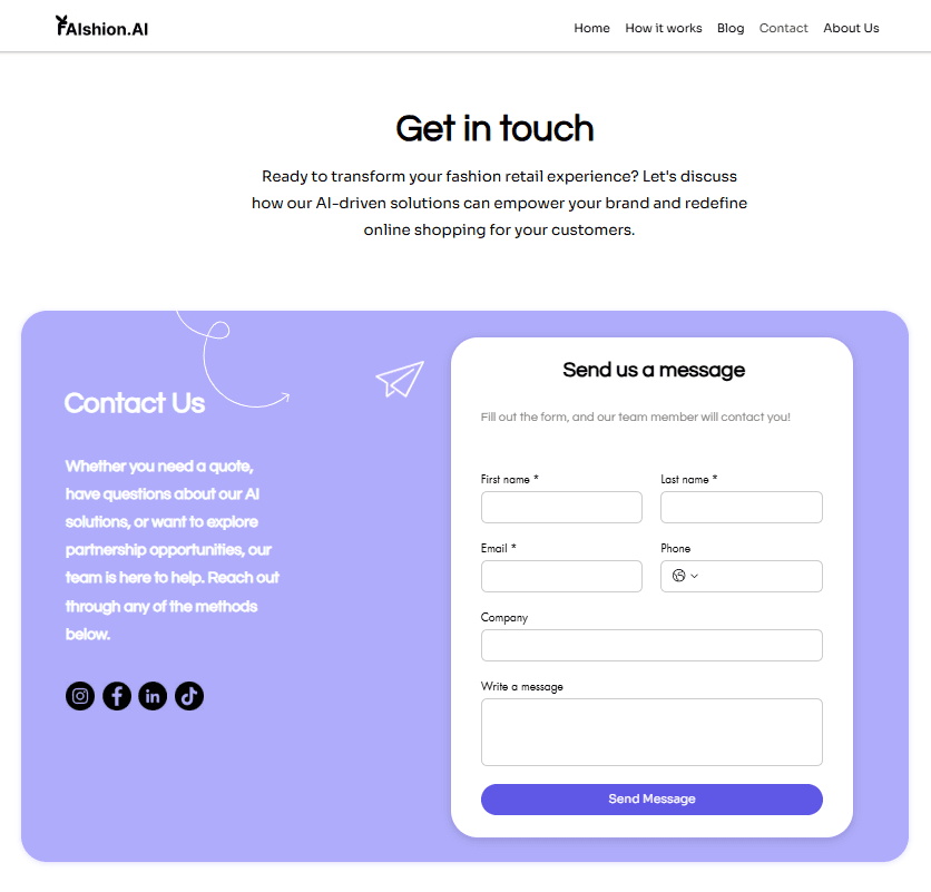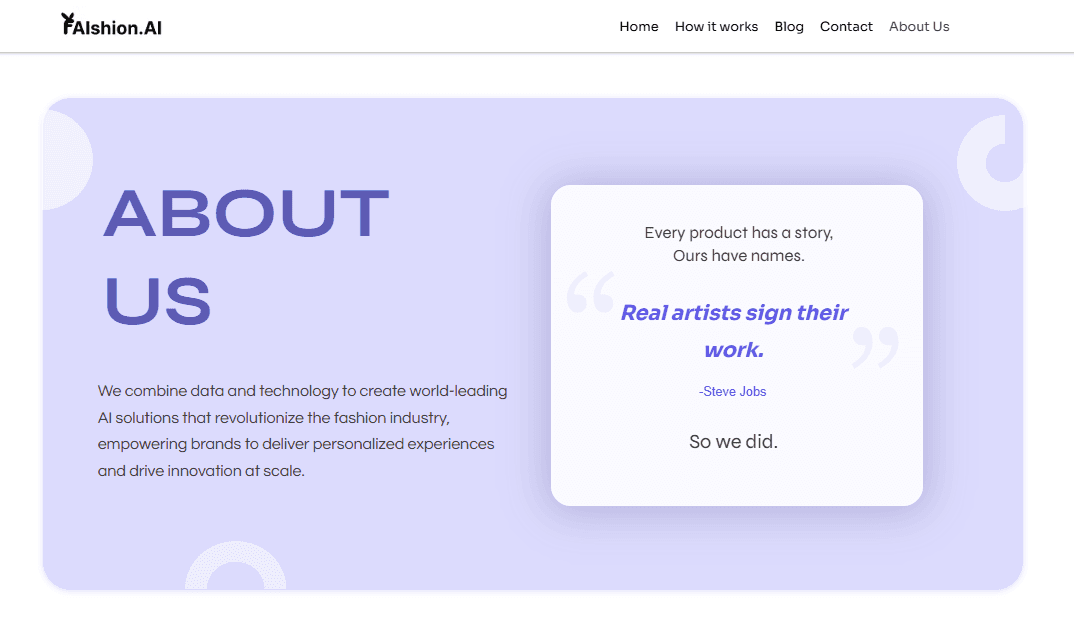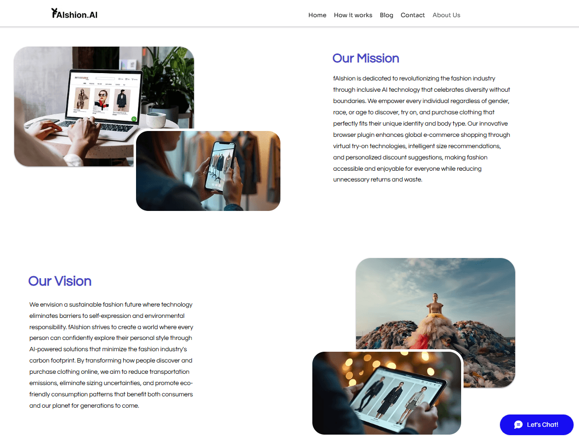 Faishion.ai needed a consistent and engaging digital presence across both web and mobile platforms. While the brand had strong business goals, the challenge was translating them into intuitive designs that improved usability and aligned with the company’s visual identity. Additionally, their Wix-based website required customization to balance branding with functionality.