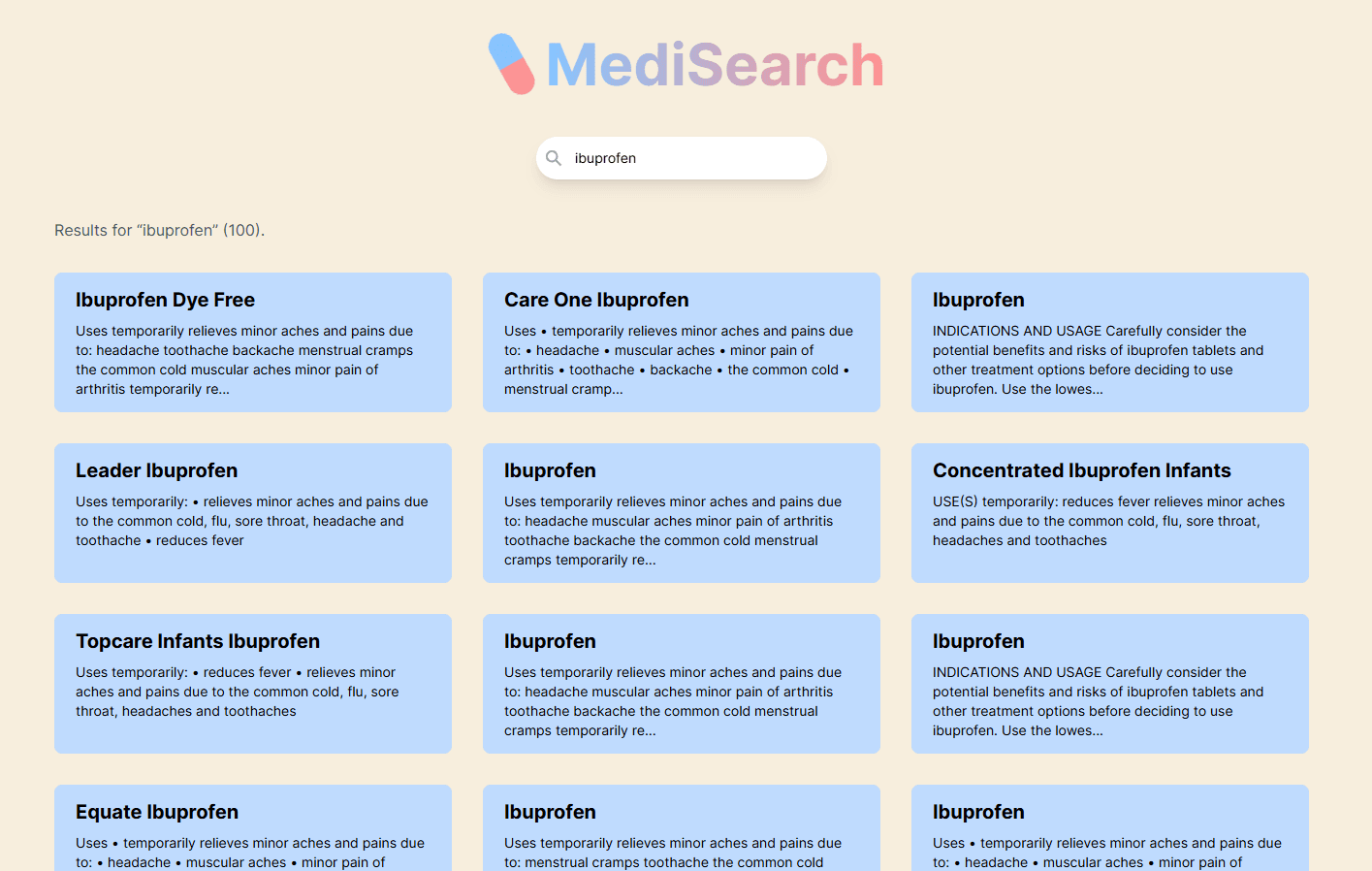 Connected to the FDA API to fetch real-time medication data.