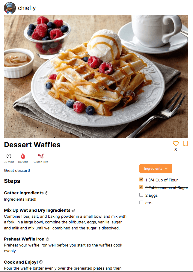 Recipes are easy to post, categorize, and save.